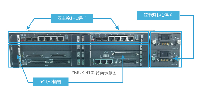 ZMUX-4102設(shè)備可選全系統(tǒng)冗余,包括雙電源冗余,雙主控板冗余和多鏈路傳輸保護(hù),高安全可靠性。